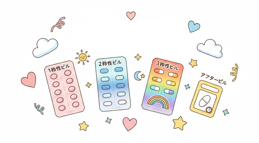 ピルには、低用量ピル・中用量ピル・アフターピルといった種類があり、それぞれに使用目的や効果、副作用の違いがあります。避妊だけでなく、生理痛やPMSの緩和、月経周期の安定化、婦人科系疾患の治療補助など、多くのメリットがある一方で、副作用やリスクも理解しておく必要があります。